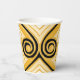 Ancient tile patterns from Persia had a big influence on western artists in the 1920's-1930's, the result was what we call today "Art Deco". This boldly coloured cushy paper cup features digital artist, Leslie Sigal Javorek's rendition of one such pattern. This one in varying shades of yellow, cream & black.