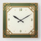 Art Deco Elegant Green Square Wall Clock