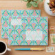 A retro design expressing art deco in 1950's Miami Florida in pretty pastel pink, blue, teal and yellow. Our fan shaped design will bring a fresh colourful feel to your home office.