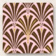 Digital reproduction of a classic, Art Deco wallpaper fan pattern - deep, chocolate brown on light shell pink, embellished with gold