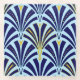 Digital reproduction of a classic, Art Deco wallpaper, fan pattern glass coaster - cobalt blue on light sky blue, embellished with gold
