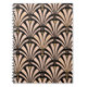 Art Deco fan pattern - peach on black Spiral Notebook