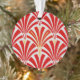 Digital reproduction of a classic, Art Deco wallpaper fan pattern - rich, lipstick red on pearl grey, embellished with gold