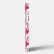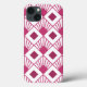 This phone case has an art deco design of beet-coloured diamonds with diagonal lines and darker beet diamonds on a field of white.