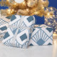 This wrapping paper has an art deco design of dusty blue diamonds with diagonal lines and dark blue diamonds on a field of white.