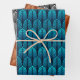 Art Deco Feather Pattern, Blue, Copper, Pewter Wrapping Paper Sheet
