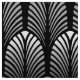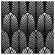 Fabric in a vintage Art Deco wallpaper pattern based on a stylised feather - shades of silver grey / grey on a black background