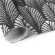 Wrapping paper in a vintage Art Deco wallpaper pattern based on a stylised feather - shades of silver grey / grey on a black background