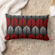 Art Deco Feather Pattern, Silver Grey and Red Lumbar Cushion