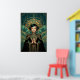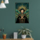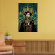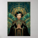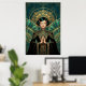 A stunning tribute to the Golden Age of Cinema. This masterpiece features a detailed vintage film projector silhouette standing atop a tiered Art Deco monument. Bathed in a radiant golden sunburst and framed by intricate teal geometric arches and celestial stars, this artwork embodies the glamour of a 1920s movie palace. Ideal for home theatres, media rooms, or as a high-end gift for cinephiles and directors.