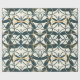 This artwork features an intricate pattern inspired by Art Deco design, chraacterised by flowing, symmetrical lines and geometric shapes. The design is rendered in a refined palette of deep teal, cream, and subtle gold accents, creating a sophisticated and elegant look. The repeating motifs form a complex, interwoven pattern that exudes both harmony and movement. The combination of curves and sharp angles adds a dynamic quality to the design, while the colour scheme maintains a sense of timelessness and classic style.