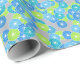 Art Deco flower pattern - blue and lime green Wrapping Paper
