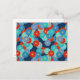 Art Deco flower pattern - blue, turquoise and red Postcard