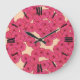 Art Deco flower pattern - deep pink and peach Large Clock