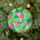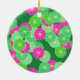 Art Deco flower pattern - shades of green, fuchsia Ceramic Tree Decoration