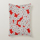 An Art Deco pattern based on a traditional, stylised chrysanthemum pattern used in Japanese textiles, in creamy white outlined in grey with a rich, tomato red background