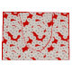 An Art Deco pattern based on a traditional, stylised chrysanthemum pattern used in Japanese textiles, in creamy white outlined in grey with a rich, tomato red background