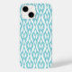 This phone case has an Art Deco design of diamonds connected by curved lines in turquoise.