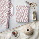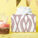This wrapping paper has an Art Deco design of diamonds connected by curved lines in brick red.