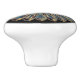Art deco flower medallion ceramic knob. Has a gold, metallic look. Simple and elegant way to add a special touch to kitchen, bathroom or furniture drawer. In iridescent colour of gold on a black background.