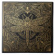 Embrace the elegance of the Art Deco era with this stunning ceramic tile. Featuring a stylized gold dragonfly set against a sophisticated black background, this design is a true masterpiece of geometric artistry. The intricate patterns and sharp lines evoke a sense of timeless luxury, making it a perfect statement piece for any room. This tile is ideal for adding a touch of vintage charm and glamour to your walls or floors, bringing a unique aesthetic to your home decor. Its bold design is sure to captivate and impress, offering a sophisticated visual experience.