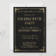 Gold foil Great Gatsby Art Deco Bachelorette party invitations with customisable text printed on black background