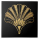 Art Deco Gold Lotus Fan Black Ceramic Tile