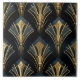 Art Deco Gold, Symmetrical, Navy and Cyan Tile