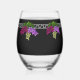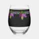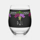 Art Deco Grapes - Black,Silver,Violet Monogrammed Stemless Wine Glass