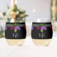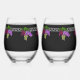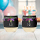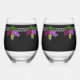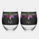 These stemless wine glasses feature Leslie Sigal Javorek's sophisticated original Art Deco inspired design that sets vividly coloured grape clusters in cerise, violet, & green hung from a silvery classical key border against a solid black background. Personalise the Monogram (or clear it). Perfect for wine-tasting or cocktail parties, impromptu get-togethers with friends. See coordinating products exclusively at HoMeArts