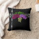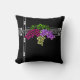 Striking accent pillow adorned w/a sophisticated, original Art Deco inspired design. Set against a black background are sleek borders crossing at a 90° angle in black & silver and at the junction, vividly coloured grape clusters in cerise, violet and green. Elegance, beauty & style for your Living Room, Family Room, or Bedroom.