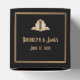 Art deco Great Gatsby black and gold wedding favour boxes with customisable text - you can add bride's and groom's name and wedding date