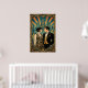 Transport yourself to the roaring twenties with this elegant Art Deco portrait of a sophisticated couple. Featuring a flapper girl in a geometric beaded dress and a man in a sharp tuxedo, they are framed against a stunning stylized city skyline bathed in golden hour light. With a rich teal and gold color palette and opulent geometric borders, this piece captures the peak of Jazz Age romance and luxury. Perfect for a dining room, living area, or a vintage-themed wedding gift.
