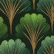 Art Deco Green and Gold Palm Leaves Wallpaper