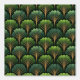 This Art Deco pattern features elegant fan-shaped motifs in layered shades of green, creating a lush, botanical feel with a glamorous vintage twist. Gold-toned linework radiates from the center of each form, adding depth and a refined sense of structure. The repeating scalloped arrangement evokes palm leaves and classic 1920s design, blending natural inspiration with sophisticated geometric symmetry.