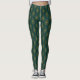 Art Deco Gold Glitter Geometric Sunburst Pattern on Green Leggings. Trendy tights for fitness, gym, dance, yoga.