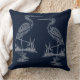 Whether you are a bird lover in general, Heron fan in particular, and/or an Art Deco or Oriental decor enthusiast, this extra cushy throw pillow features a subtle design that is sure to please! Featured are a pair of graceful Herons with one leg bent & raised, standing in a shallow bog. Printed in a distressed pale blue-grey ink against a subtle tone-on-tone navy blue background. Also available in other colours.