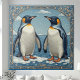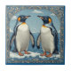 Art Deco Ice Birds Penguin Couple Snow Blue Ocean Tile