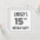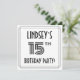 The front of this luxurious and 1920s-1930s style inspired fifteenth birthday party/celebration invitation card design features an editable name, a fancy art deco look inspired number “15th”, the message “BIRTHDAY PARTY!”, and a border pattern consisting of lines. The back features personalised details about the event, such as the date, time, venue/place, and any other information that may be relevant. Luxurious, elegant, customisable invitations like these might be used to invite guests/attendees to a birthday gathering/party being held to honour somebody’s 15th birthday. [~Z0000614]