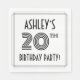 This elegant and 1920s/1930s style inspired twentieth birthday celebration/party paper napkin design features an editable name, a fancy art deco style inspired number “20th”, the message “BIRTHDAY PARTY!”, and a multi-line border. Stylish paper napkins like these might be used when hosting a party for somebody in celebration of their twentieth birthday. [~Z0000613]