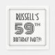This stylish and 1920s/1930s style inspired fifty-ninth birthday celebration paper napkin design features a personalised name, a fancy art deco look inspired number “59th”, the message “BIRTHDAY PARTY!”, and a multi-line border. Luxurious birthday themed paper napkins like these might be used at a party in celebration of somebody’s fifty ninth birthday. [~Z0000613]