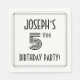 This luxurious fifth birthday celebration paper napkin design features a personalised name, a fancy art deco look inspired number “5th”, the message “BIRTHDAY PARTY!”, and a multi-line border. Birthday themed paper napkins like these might be used at a party celebrating somebody’s fifth birthday. [~Z0000613]