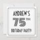 The front of this luxurious and 1920s-1930s style inspired seventy-fifth birthday party/celebration invitation card design features an editable name, a fancy art deco style inspired number “75th”, the message “BIRTHDAY PARTY!”, and a border pattern consisting of lines. The back features personalised details about the event, such as the date, time, location/venue, and any other information that may be useful. Elegant, luxurious, editable invitations like these might be used to invite guests to a birthday gathering/party being held to honour somebody’s 75th birthday. [~Z0000614]