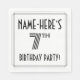 This luxurious seventh birthday party/celebration paper napkin design features a customisable name, a fancy art deco look inspired number “7th”, the message “BIRTHDAY PARTY!”, and a border pattern consisting of lines. Stylish birthday themed paper napkins like these might be used at a birthday party celebrating somebody’s 7th birthday. [~Z0000613]