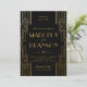 Art Deco Ironwork Faux Gold Wedding Custom Black Invitation