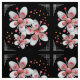 This Custom Made FABRIC featuring an original digital painting by Leslie Sigal Javorek is a great choice for your Art Deco re-decorating plans! These fanciful Apple Blossom Flowers have pink stamens & a bit of rouge on the soft white petals that are enhanced by the contrast of the black background. Classic Art Deco corners of thin white lines unifies the theme. The polyester weave shown offers the blackest blacks & is best suited for upholstery. See all 7 fabric options for other uses.