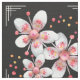 Art Deco-ish Apple Blossoms - White, Pink on Black Fabric
