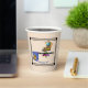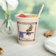 Celebrate your Coffee Shop or Bakery with thesr distinctive paper cups featuring an eclectic, colourful mix of a Clarisse Cliff inspired whimsical ceramic Coffee Pot, Cup and Saucer combined w/a traditional Chinoiserie Cookie Jar and other Art Deco Accents all set against a black and white vertical striped background and an arched caption you can personalise.