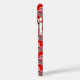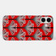 Phone case in a reproduction of a stylised, Art Deco lily, wallpaper pattern - a gradient of light silver grey / grey to dark graphite, accented with black, on a deep Chinese red background