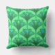 Art Deco Lily, Jade Green and Turquoise Cushion
